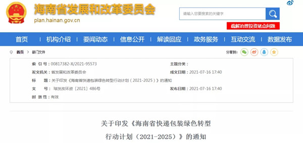 海南8部门联合印发快递包装绿色转型行动计划